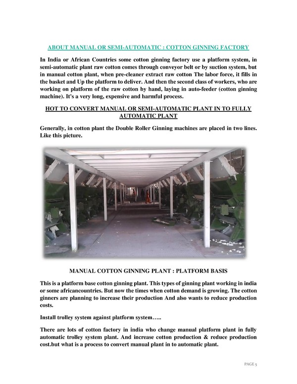 In india all cotton ginning factory use only Double Roller Ginning Machine, now in africa all ginners change saw ginning machine, & install double roller ginning systems, why because of saw gin machine always given short staple cotton lint and high maintanance. Roller Gin system is very easy & given low maintanance also given short & long staple cotton lint so Roller Ginning Machinery is best for all ginning.