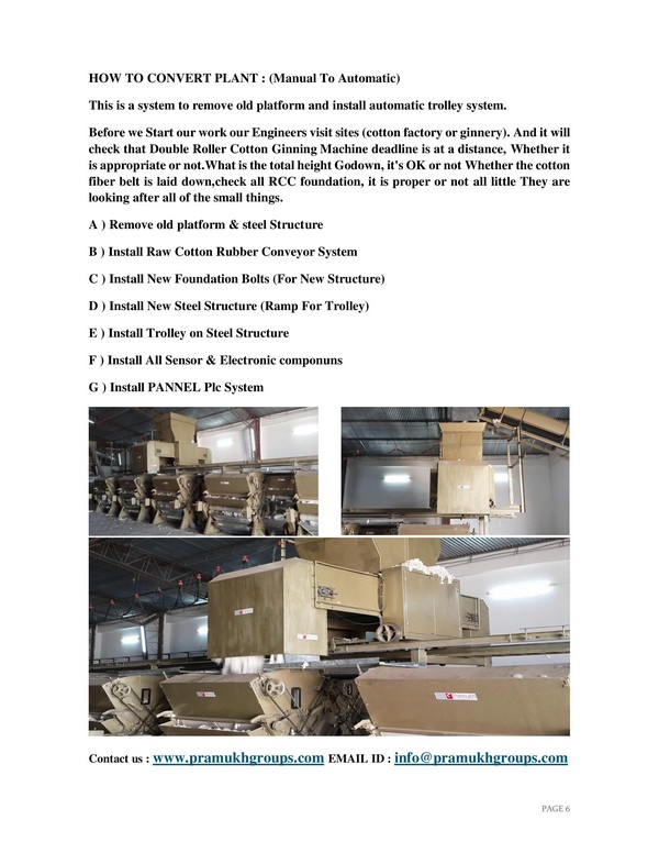 Pramukh Steel industries Manufacturer & Exporter Cotton Ginning Machinery Fully Automatic Plant. We are biggest supplier of double roller ginning machine, cotton per-cleaner, cotton lint-cleaner, cotton air-saprator, blower, High Quality Cotton Baling Press or more automatic machinery.