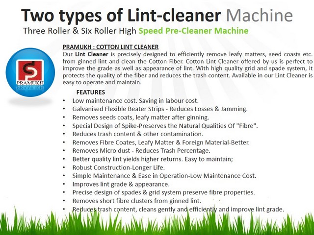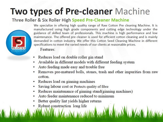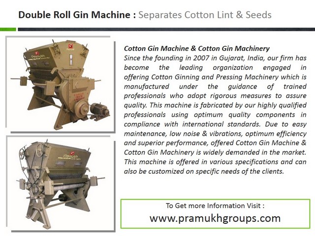 Pramukh Steel industries Manufacturer & Exporter Cotton Ginning Machinery Fully Automatic Plant. We are biggest supplier of double roller ginning machine, cotton per-cleaner, cotton lint-cleaner, cotton air-saprator, blower, High Quality Cotton Baling Press or more automatic machinery.